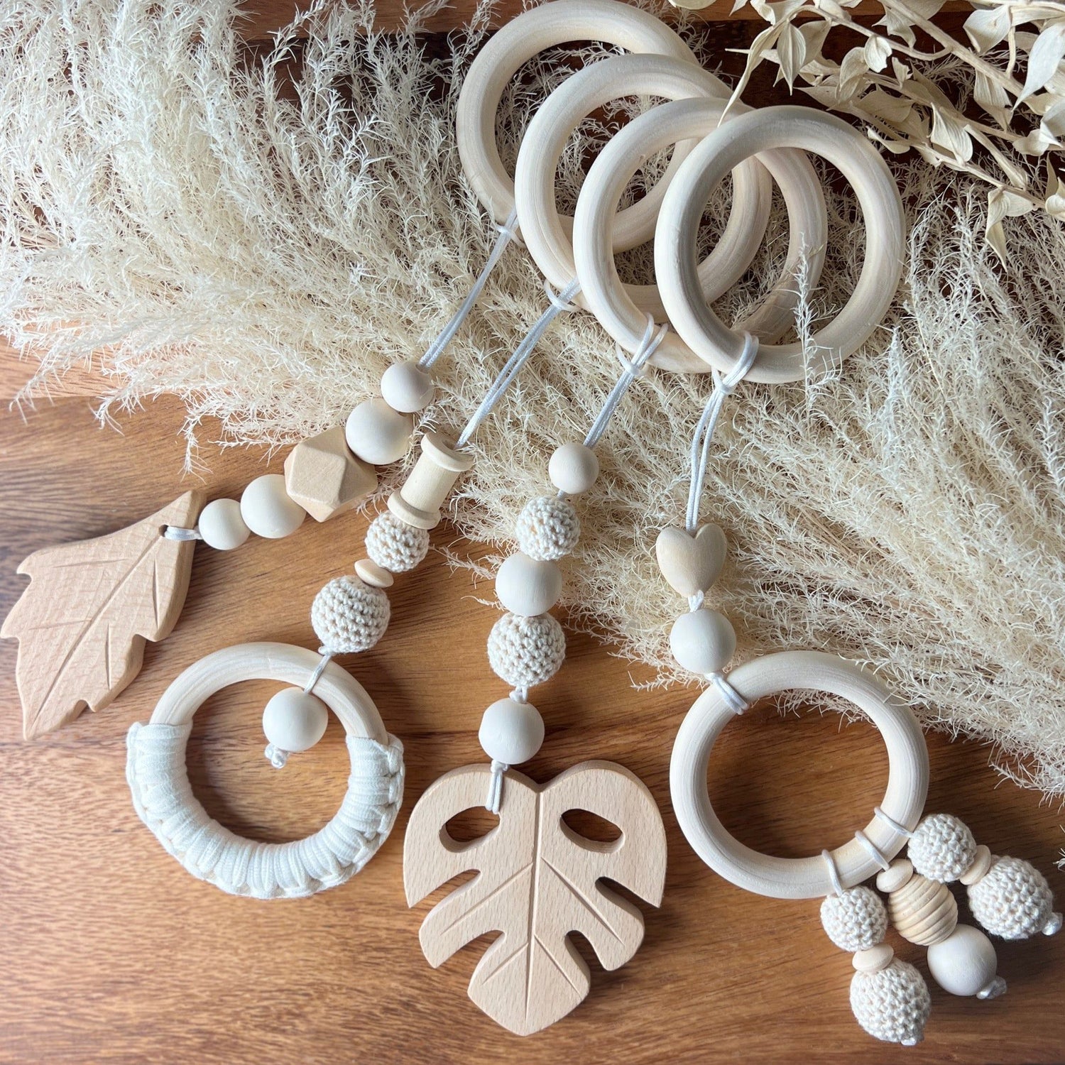 Beautifully simple and safe, our wooden baby gyms spark early discovery through natural textures and calming design.