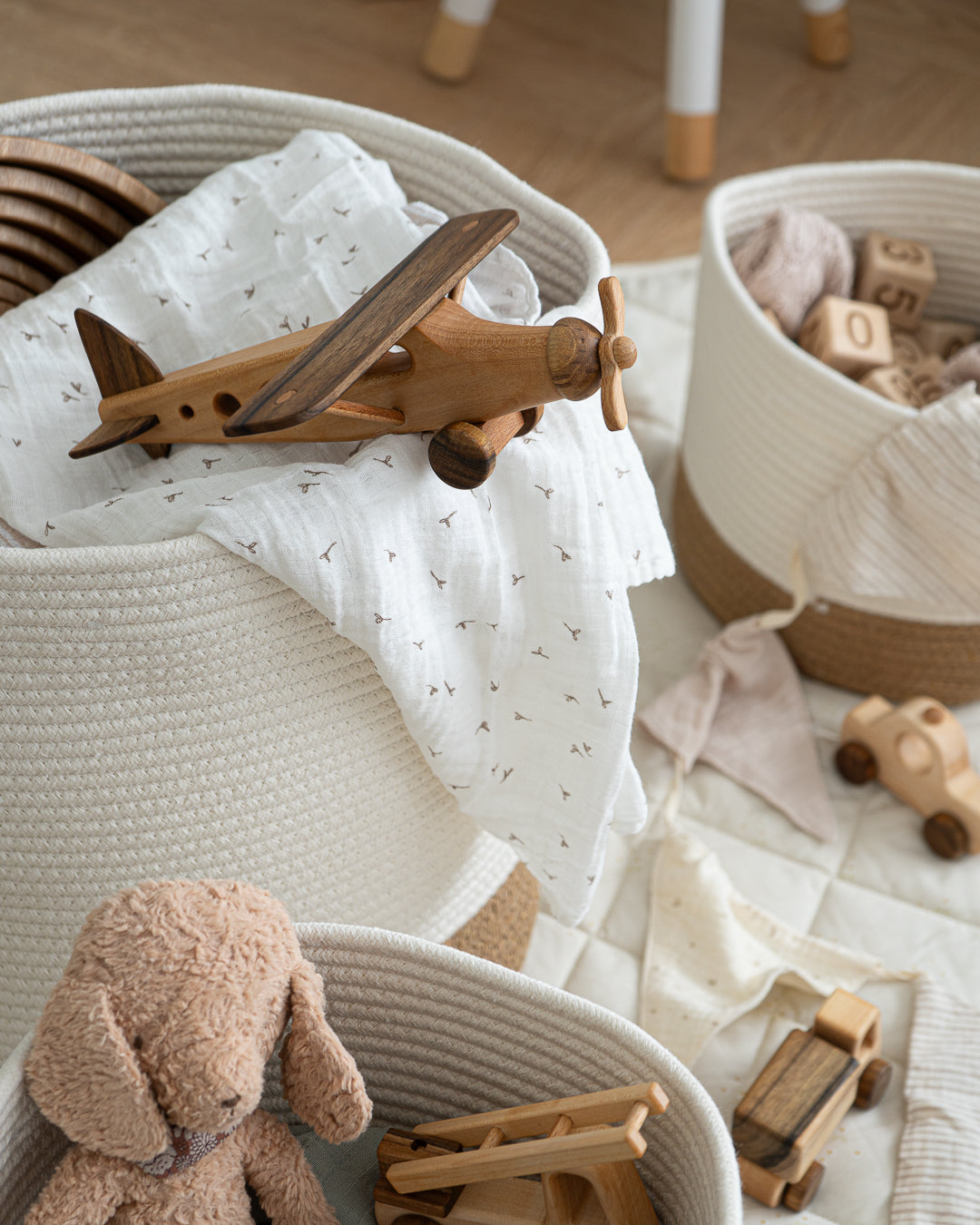 Our cotton rope storage baskets blend softness and strength—perfect for storing toys, books, and cozy things. A gentle, natural way to keep your little one’s space calm, organised, and beautiful.