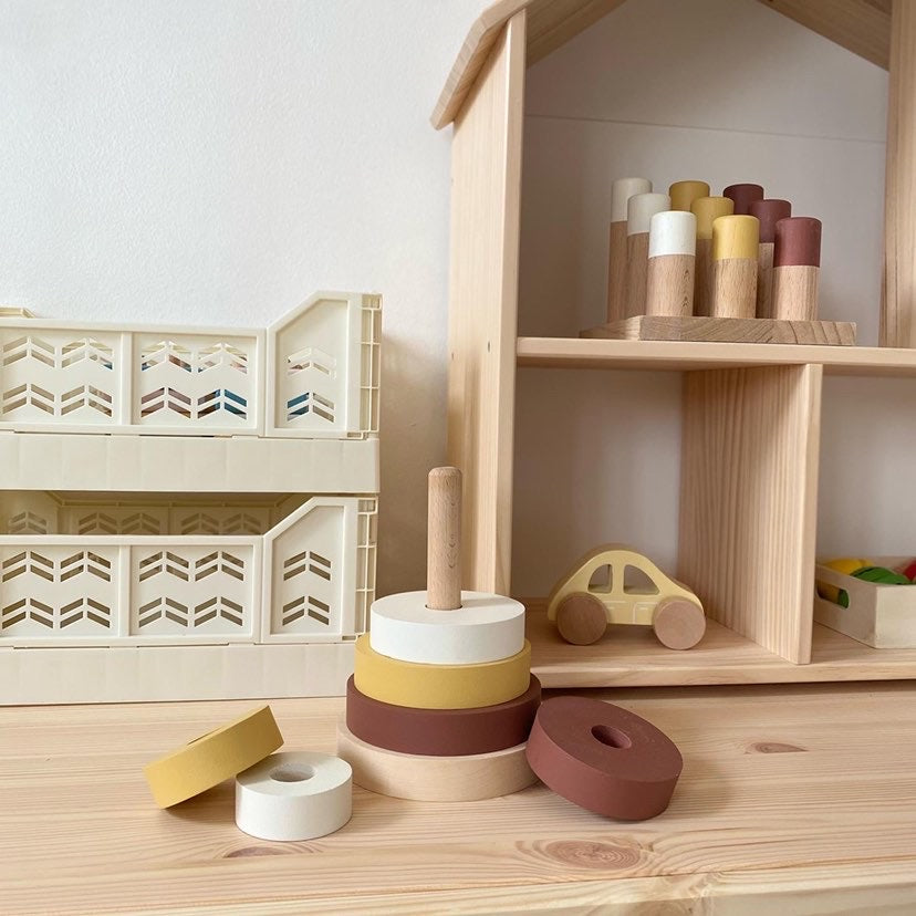 Our handcrafted wooden Pyramid Stacker and Peg Board Sorter are designed to grow with your little one — and look beautiful while doing it. Made from smooth beech wood, each piece offers a tactile, sensory experience, supporting early development through hands-on play.