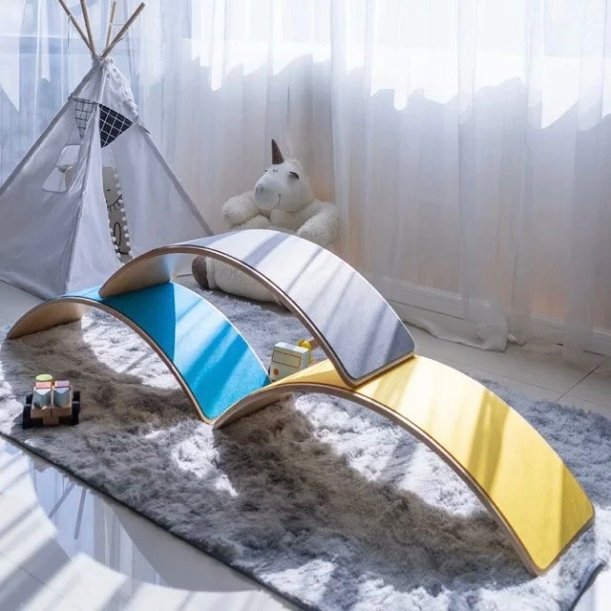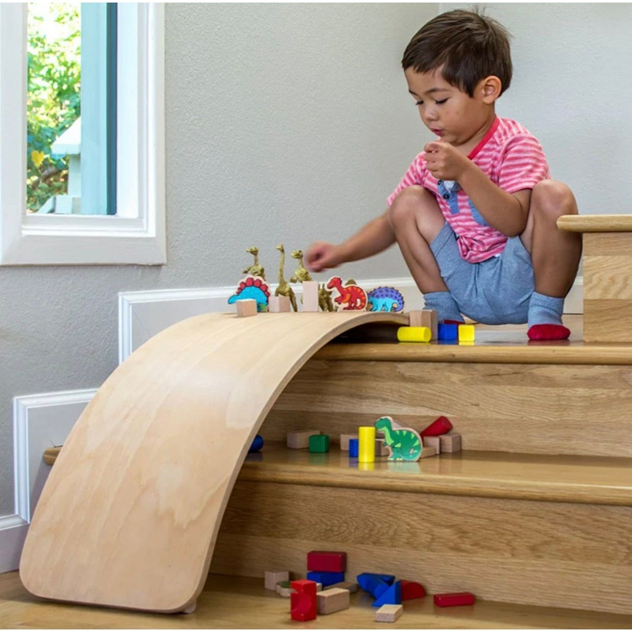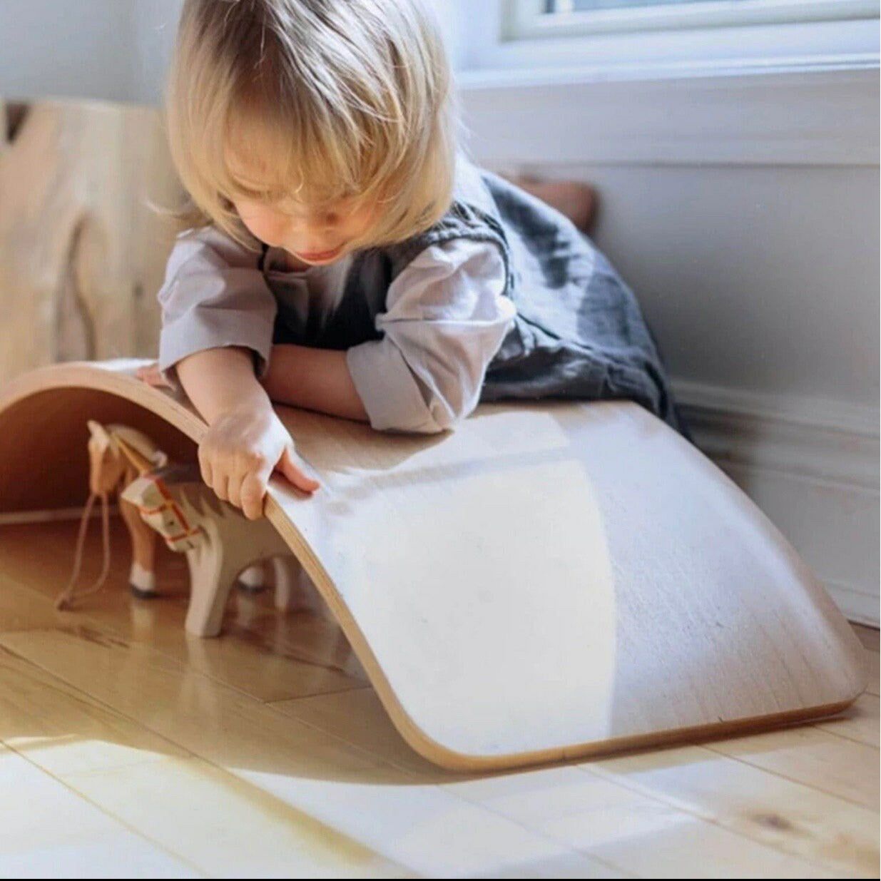 This beautifully crafted curved beechwood balance board is a must-have for open-ended play. It supports gross motor development, balance, and sparks creativity in little ones and beyond. Use it as a bridge, ramp, step, rocking chair, tunnel, surfboard—or even a cozy reading nook!