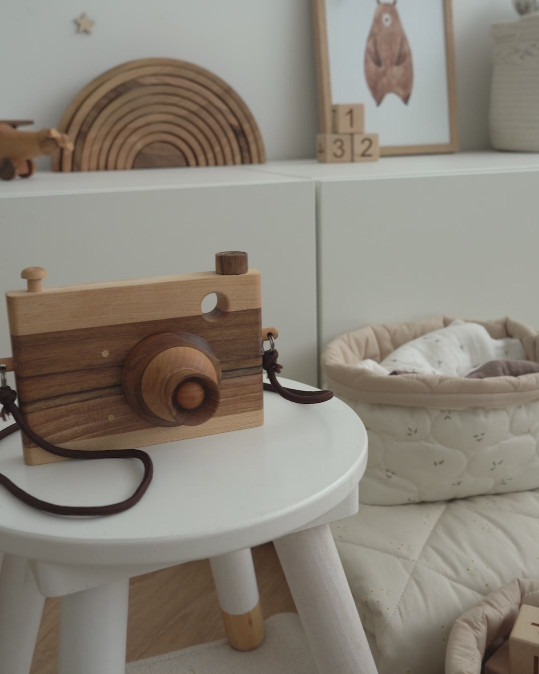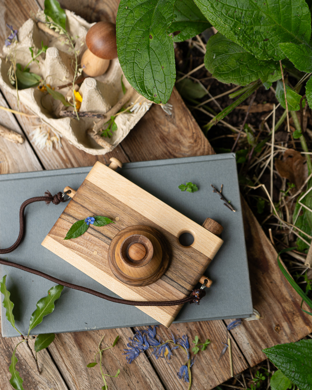 The cutest little wooden camera—just as adorable as it is fun! Perfect for little adventurers to carry on their travels and dive into imaginative play.