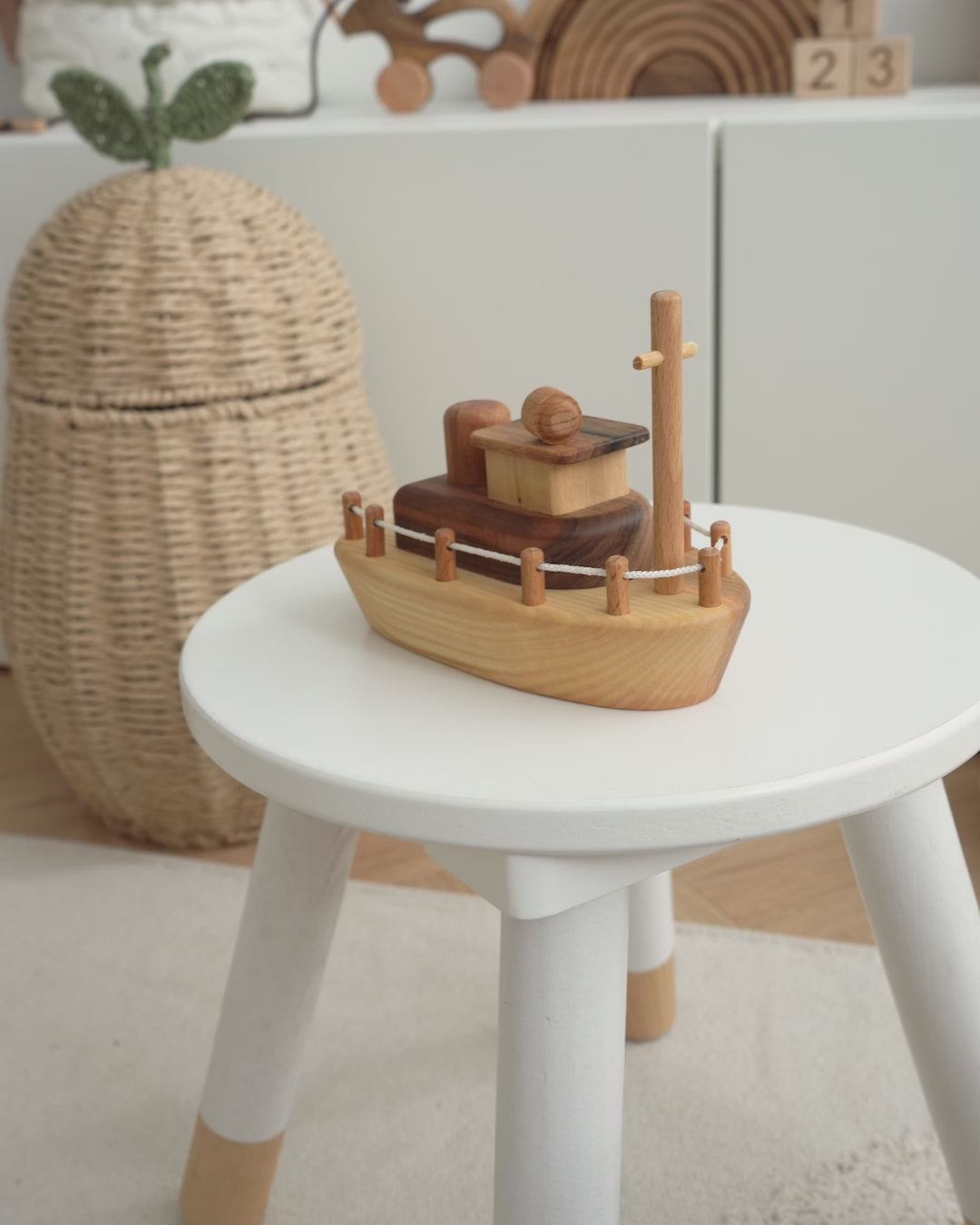 Make playtimes full of smiles with this charming wooden sailboat. Designed for little hands and big imaginations, it’s perfect for open-ended play, motor skill development, and looks oh-so-lovely on a nursery shelf after all the fun.
