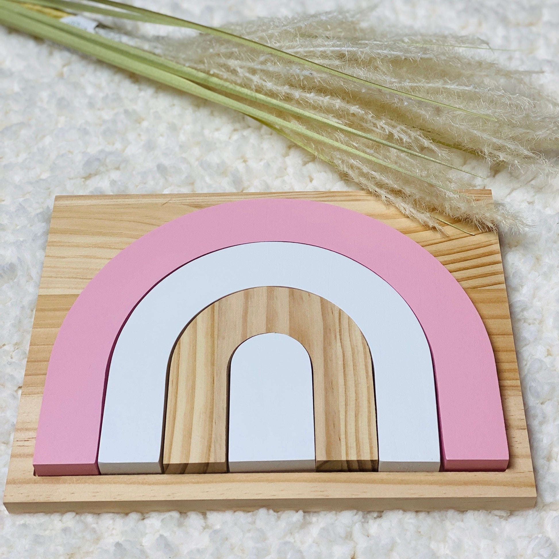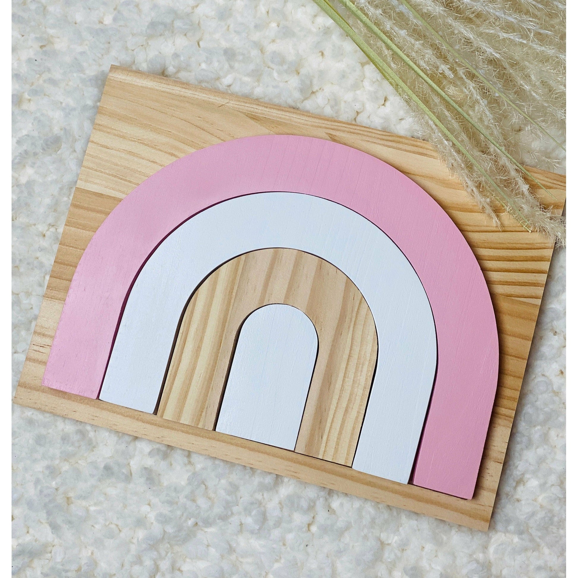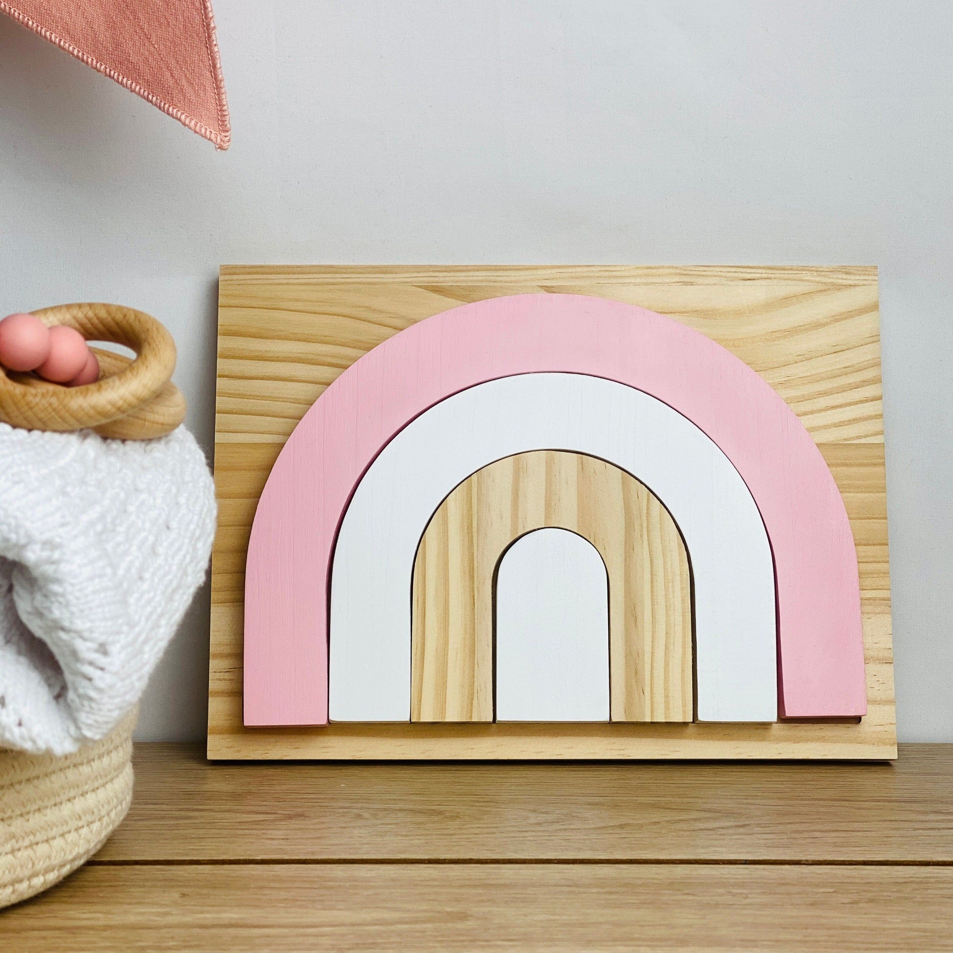 Pink Wooden Rainbow Puzzle Board, Nursery Decor