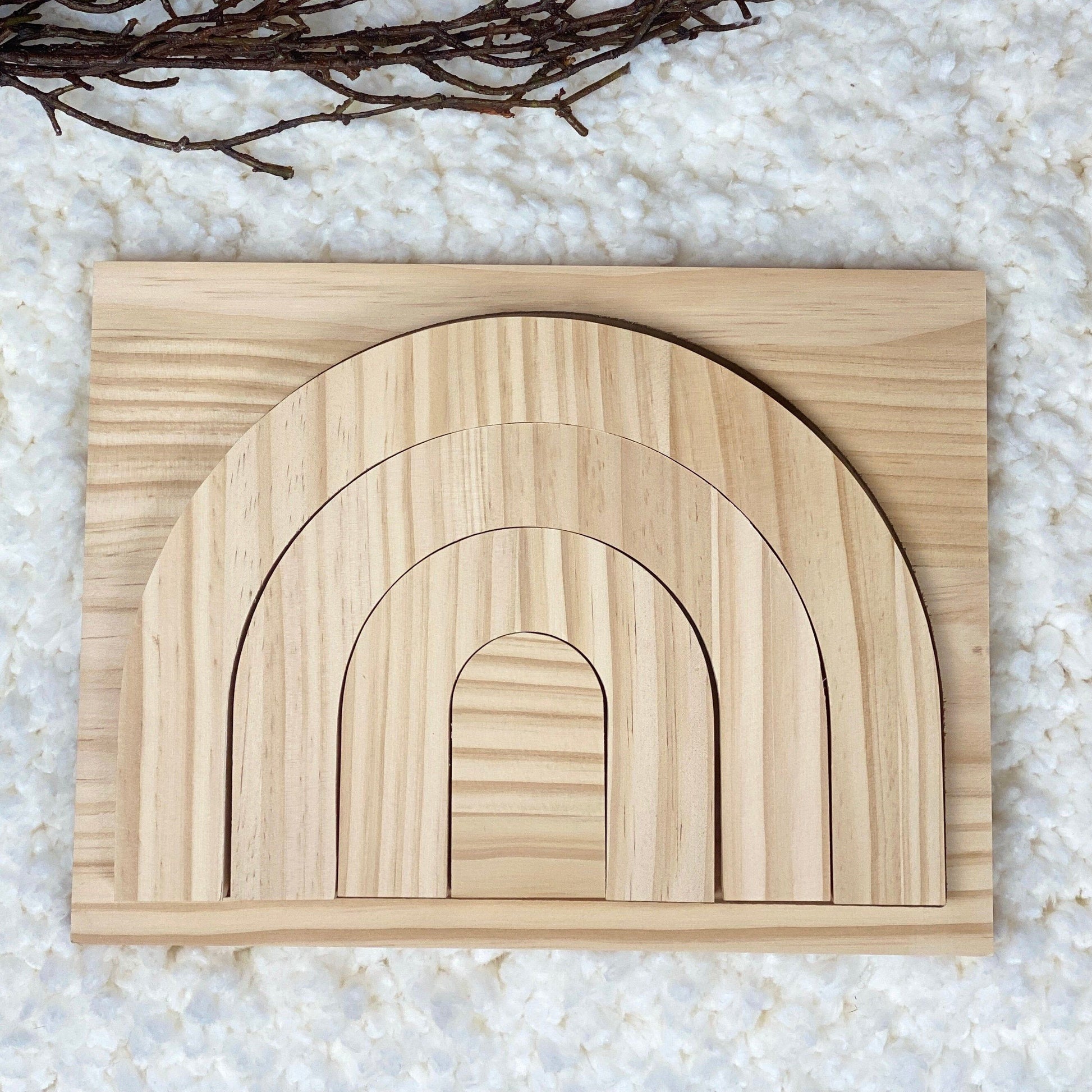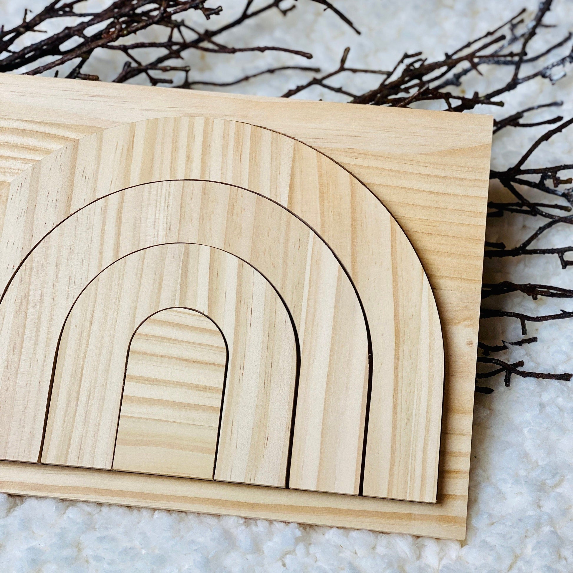 Natural Wooden Rainbow Puzzle Board, Nursery Decor